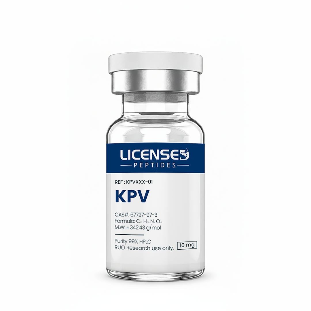 KPV is a synthetic tripeptide consisting of lysine, proline, and valine (Lys-Pro-Val). Derived from the extensively studied hormone α-melanocyte-stimulating hormone (α-MSH), this fragment operates independently of the broader hormonal functions associated with its parent molecule. In laboratory and controlled preclinical research settings, KPV has gained significant interest for its selective anti-inflammatory activity, structural simplicity, and stable biochemical profile. Despite its compact structure, the peptide demonstrates considerable relevance in research models focused on inflammatory pathways, epithelial barrier dynamics, and immune-signaling responses. Because KPV represents a specific portion of α-MSH, it maintains certain mechanistic characteristics without exerting pigment-related or hormonal effects. These attributes make it a valuable tool for researchers aiming to investigate inflammation-associated mechanisms while avoiding activation of melanocortin-linked endocrine pathways. As ongoing studies continue to explore its potential, KPV remains a notable candidate for controlled laboratory experiments involving cytokine behavior, mucosal environments, and dermal or epithelial research models. Ongoing preclinical investigations continue to evaluate KPV in research models involving cytokine regulation, mucosal environments, and dermal or epithelial systems. For laboratory consistency and reproducibility, KPV is commonly supplied as a high-purity, LPS-free peptide, produced under controlled conditions. Each batch is formulated as an endotoxin-free peptide and undergoes verification as research peptides endotoxin tested, supporting its suitability for sensitive in-vitro and ex-vivo experimental applications. For research use only. Not for human or animal use. This material is intended exclusively for laboratory and scientific research purposes.